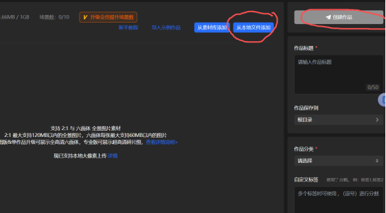 3.登录https://www.720yun.com/,点击创建全景漫游作品,加入素材,