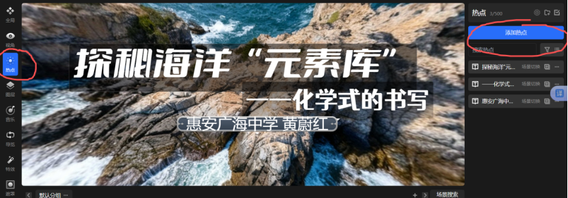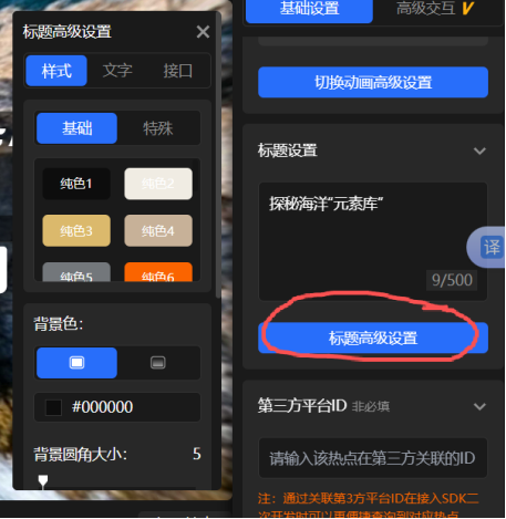 4.从“热点”,可以加入文字,并在“标题高级设置”可以设置字体的格式、大小等