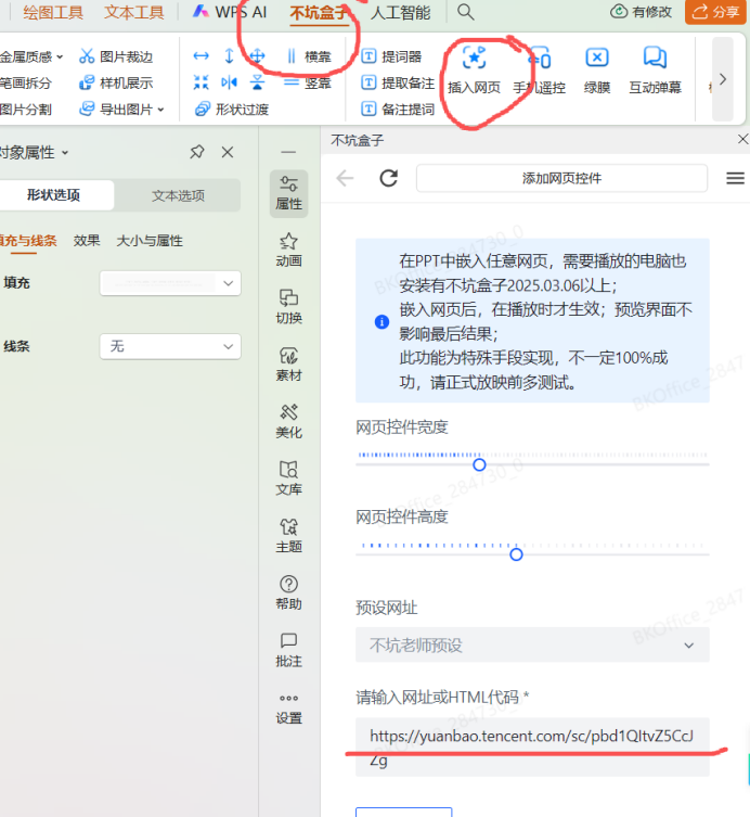 3.安装完毕后,WPS上方会出现“不吭盒子”,点击插入网页